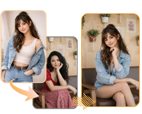 Elevate your eCommerce product images by seamlessly swapping your model into stunning outdoor or high-end settings with our character swap AI free tool. No need for expensive photoshoots or long location shoots. With our AI Character Swap, you can replicate beautiful environments while keeping your model’s actions and pose consistent. Save time and money while ensuring your product images look professional, eye-catching, and perfect for marketing!
